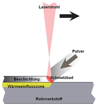 Som energisource bruges lys for at smelte et pulverlignende materiale. Det smeltede materiale indgår en metallurgisk forbindelse med fx rør. Ved hjælp af en speciel optik produceres en laserstråle som smelter pulverlegeringer på. Den kontinuerlige procesovervågning sørger for en minimering af varmeindtrægning, således minimeres Fe andelen betydeligt og beskyttelseslaget er mere ren og homogen end en svejset overflade. Det betyder, at der kan bruges et mindre lag for at opnå den samme korrosionsbeskyttelse. I kedler bruges typisk Inconel 625 eller Hastelloy C, mens Nickel -og Kobaltlegeringer bruges i maritime områder. Teknikken kan desuden bruges med fordel til reparation af slidte dele såsom spindler, buchser, aksler, mv.